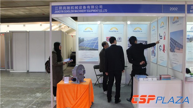 具體參展企業有:常州龍騰光熱科技股份有限公司(集熱管)、北京佳潔能新節能技術有限公司(熔鹽閥)、北京奧普科星技術有限公司(集熱管生產設備)、河北諾維光伏設備有限公司(光伏光熱支架)、旭硝子特種玻璃(大連)有限公司(超白玻璃)、Siemens(汽輪機)、北京瑞科同創能源科技有限公司(輻射測量)、北京智陽科技有限公司(輻射測量)、北京曙光新航科技有限公司(輻射測量)、北京藍陽惠通科技有限公司(輻射測量)、江陰尚馳機械設備有限公司(回轉減速機)、浙江恒豐泰減速機制造有限公司(回轉減速機供應商)、馬鞍山方圓精密機械有限公司(回轉減速機)、北京震坤行貿易有限公司(膠粘劑及配套設備)、山東魯陽節能材料股份有限公司(保溫材料)、安徽延達能源投資有限公司(跟蹤系統與項目投資)、成都誘光科技有限公司(跟蹤系統)、北京國電智深控制技術有限公司(DCS控制系統)、上海齊耀動力技術有限公司(斯特林發動機)。