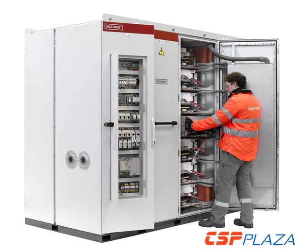 變頻器對于控制調節電站主泵的正常運轉起著至關重要的作用。Ingeteam此次向該電站供應的9臺中壓變頻器,主要是負責保證電站的熔鹽泵以及向蒸汽發生器送水的供水泵能夠在安全環境下正常工作。