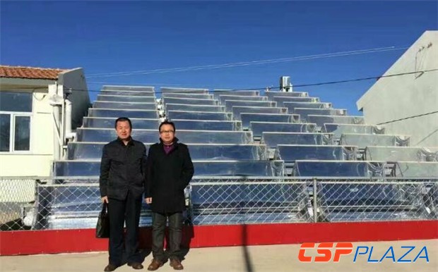 該項目采用東莞中能陽光能源科技有限公司免追蹤平板聚光太陽能集熱器產生中高溫熱能,并依靠真空層高效保溫,特別適合于寒冷地區蒸汽供應及采曖。從2016年12月17開始運行,從檢測到的數據看,太陽能加熱溫度達到91.9度,水箱及室內換熱器溫度平穩運行在56-60度之間,加熱效果良好,完全滿足供暖要求。