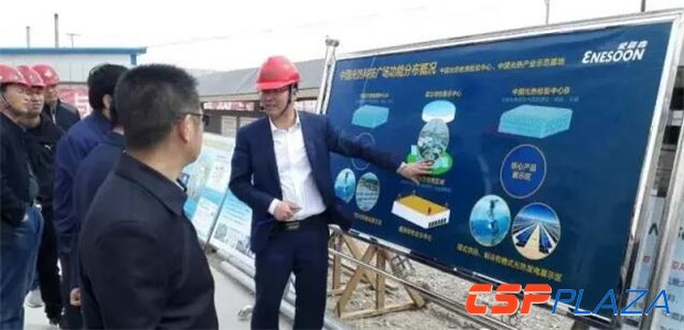 深圳市愛能森科技有限公司執行總裁陳武忠現場詳細介紹了項目建設進展情況,今年7月熔鹽生產下線,年內一期30萬將全部投產,為首批國內光熱電站熔鹽供應提供有力保障。同時,重點介紹了由愛能森規劃的中國光熱科技廣場設計規劃和發展理念,將建成全球首個大規模集群熱、電、冷聯供智能微網;全球首個光熱全產業鏈產品檢驗檢測認證中心;全球首個多功能光熱電站培訓中心。