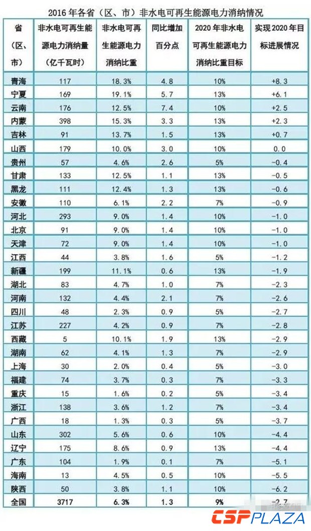 “青海、寧夏、云南、內蒙古、吉林和山西非水電可再生能源消納比重已達到2020年目標,貴州、甘肅、黑龍江、安徽、京津冀和江西接近實現目標,陜西、海南、廣東、遼寧和山東實現2020年目標還有較大差距。”國家能源局4月18日發布的《2016年度全國可再生能源電力發展監測評價報告》點名關注陜西、海南、廣東、遼寧等省份。