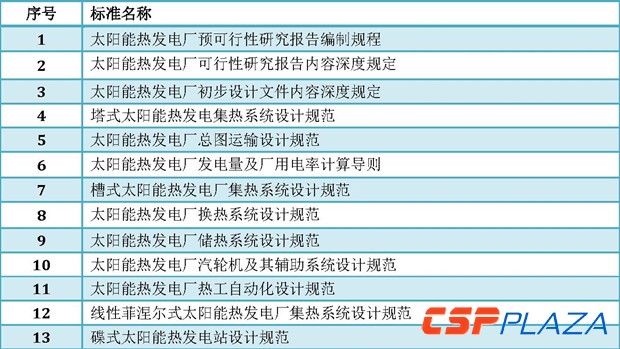 據不完全統計,中國已經發布或正在編制的光熱發電行業標準如下: