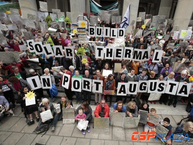 CSPPLAZA光熱發電網訊:在剛剛過去的上周日,超過200名示威者手持自制的仿真太陽能聚光模板,聚集在南澳大利亞州議會大樓階梯上。據悉,此次示威活動旨在敦促州政府啟動位于奧古斯塔港(PortAugusta)的太陽能光熱發電站項目。