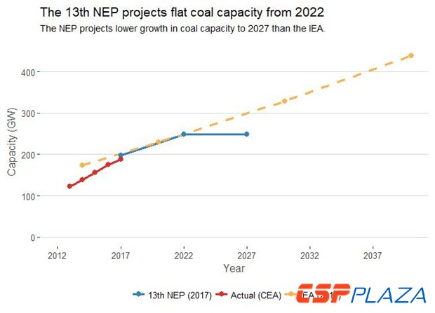 這份電力規劃草案同意國際能源署關于2022年前印度煤電產能增長的預測,該預測反映了當前在建的50吉瓦煤電產能。但規劃草案同時指出,國際能源署可能需要下調其關于后2022年情景下的煤電產能預測。