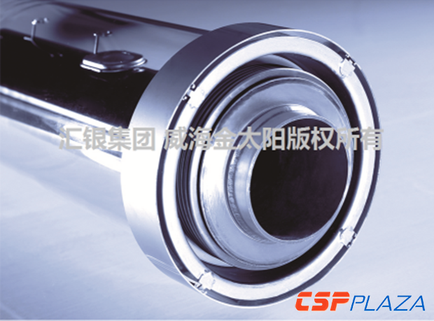 匯銀集團擁有集熱管年產能20萬支的制造能力,產品主要應用于槽式和菲涅爾系統,以及中溫應用等。該公司技術源自集熱管先驅企業以色列Solel,擁有50多項專利,是國內唯一一家擁有兩百兆瓦商業電站的高溫集熱管供貨商,也是國內唯一通過歐盟認證并實現批量出口發達國家的企業,主導產品450度槽式光熱發電用高溫集熱管通過國際權威檢測機構認證。匯銀集團也是國內唯一一家擁有熔鹽集熱管技術的廠家。這款專為熔鹽集熱管設計的涂層可以承受600攝氏度的工作溫度。性能指標為吸收率96.2%,400攝氏度下發射率7.8%,400度熱損220W/m。該款集熱管設計還能避免波紋管發生晶間應力腐蝕,保護波紋管免受溫差沖擊,并使有效長度增加到97.8%。