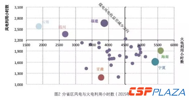 我國各省份棄風率的水平與當地火電發電小時數的關系是一個很有意思的問題。按照理論上的揭示,風電越多的地方,火電機組的利用水平應該更低,具有更少的利用小時數(與歷史以及其他地區相比)以體現系統運行成本最小化(全社會福利最大化)的要求。但是,至少從2015年我國各省份的火電利用小時數分布來看,這并不是事實,二者之間的關系是非常混雜的。