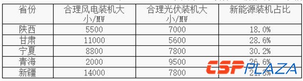表2 2020年西北區域保證新能源正常消納合理裝機表