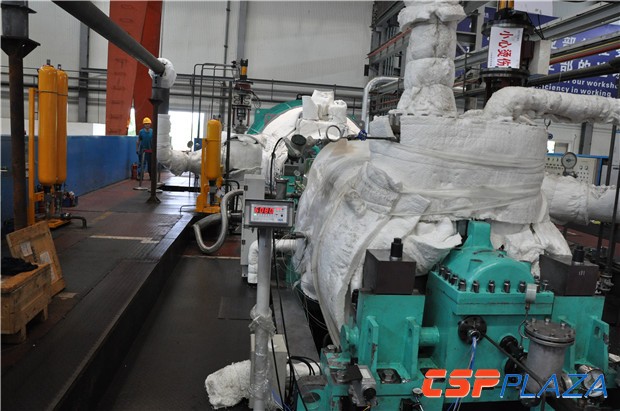 據東方汽輪機有限公司(簡稱東方汽輪機)最新消息,6月9日14時,由東方汽輪機針對中廣核德令哈50MW槽式光熱發電項目自主研發制造的國內首臺50MW級太陽能光熱發電汽輪機在該公司試車平臺上完成了全部試車環節,各項指標優異,空負荷試車一次性成功!這也是繼5月25日該汽輪機組完成高壓外缸上半的蓋缸工作,即完成重要部套的全部裝配工序之后的又一重大進展。