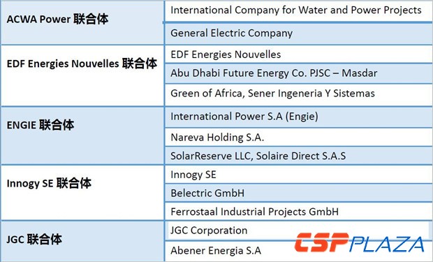 CSPPLAZA光熱發電網訊:近日,摩洛哥可再生能源管理局(MASEN)公布了Noor Midelt光熱光伏混合電站項目一期的招標結果,共計5家聯合體通過了招標資格預審。該項目于2016年7月正式啟動招標流程, 截止到2016年11月收到項目提案總計7份。