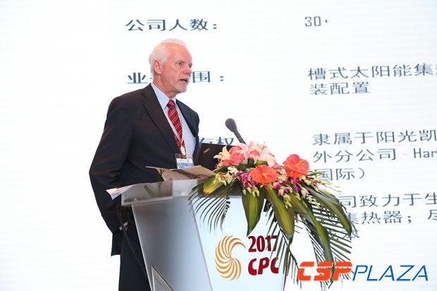 CSPPLAZA光熱發電網訊:中國光熱發電行業最大規模、層次最高的國際性年度盛會中國國際光熱電站大會暨CSPPLAZA年會2017(CPC2017)于2017年6月14~16日在杭州召開。弗勞恩霍夫研究院(Fraunhofer ISE)光熱項目總監Tom Fluri出席了本次會議并發表演講,著重介紹了創新型單罐熔鹽儲熱系統在建造和運行中的成本優勢,詳細解析了單罐儲熱如何讓光熱電站更具競爭力。
