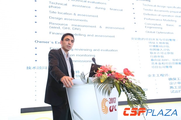 CSPPLAZA光熱發電網訊:中國光熱發電行業最大規模、層次最高的國際性年度盛會中國國際光熱電站大會暨CSPPLAZA年會2017(CPC2017)于2017年6月14~16日在杭州召開。西班牙AriSolar公司技術總監EnriqueGarcíaCasares就光熱發電項目前期開發工作概述作專題報告。報告從分別從政策制定者角度、當地產業角度、項目開發者角度,總結了光熱項目前期開發所需要關注的數個關鍵點,并一一作了詳細闡述。