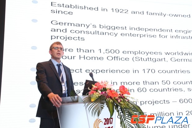 CSPPLAZA光熱發電網訊:中國光熱發電行業最大規模、層次最高的國際性年度盛會中國國際光熱電站大會暨CSPPLAZA年會2017(CPC2017)于2017年6月14~16日在杭州召開。德國Fichtner光熱項目部副總經理JohannesKretschmann就光熱發電項目的基礎設計案例作專題報告。報告列舉了基礎設計所應關注的項目進度時間安排、數據分析、關鍵設計、運維模式、文件審批、關鍵設備的采購等方面,并一一作了詳細闡述。
