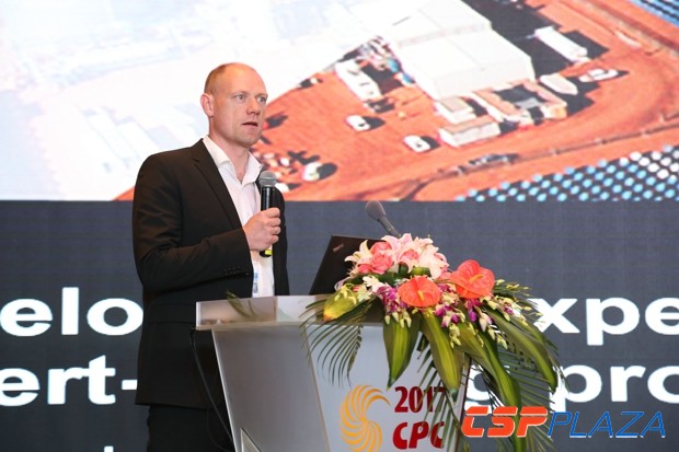 CSPPLAZA光熱發電網訊:中國光熱發電行業最大規模、層次最高的國際性年度盛會中國國際光熱電站大會暨CSPPLAZA年會2017(CPC2017)于2017年6月14~16日在杭州召開。丹麥AalborgCSP項目開發工程師JanKragb?k就Sundrop沙漠農場光熱綜合能源利用項目的開發經驗作專題報告。報告介紹了該項目從設想到實際建設再到運維的全過程,并著重向來賓介紹了該項目中太陽能光熱技術的應用。