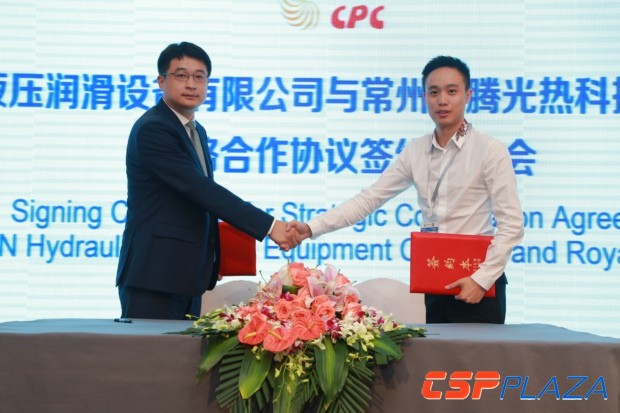 CSPPLAZA光熱發電網訊:在中國國際光熱電站大會暨CSPPLAZA年會2017(CPC2017)期間,常州龍騰光熱科技股份有限公司(簡稱龍騰光熱)與四川川潤液壓潤滑設備有限公司(簡稱川潤液壓)舉行了戰略合作框架協議簽約儀式,龍騰光熱戰略規劃總監竇懷新與川潤液壓總經理鐘海暉代表雙方簽署了戰略合作協議。