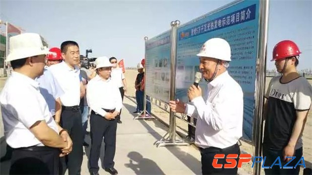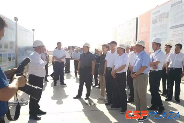 7月11日上午,甘肅省委副書記、省長唐仁健率全省項目觀摩督查活動第二組前往蘭州大成敦煌50MW光熱發電示范項目基地觀摩督查。蘭州大成科技股份有限公司董事長范多旺陪同觀摩督查。