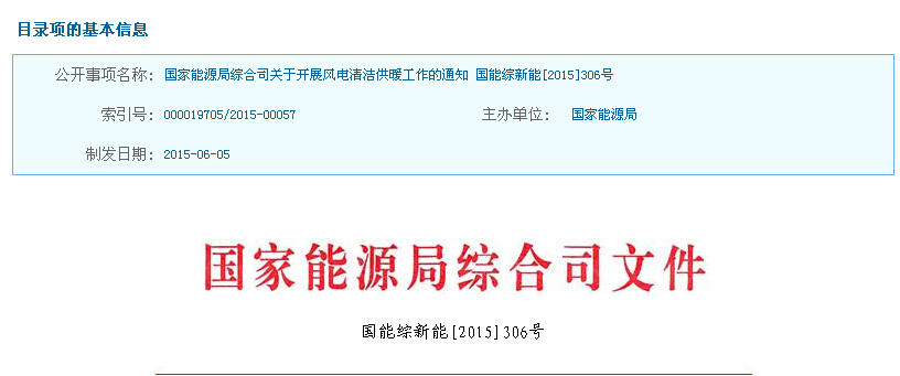 國家能源局綜合司下發關于開展風電清潔供暖工作的通知,以下為通知全文