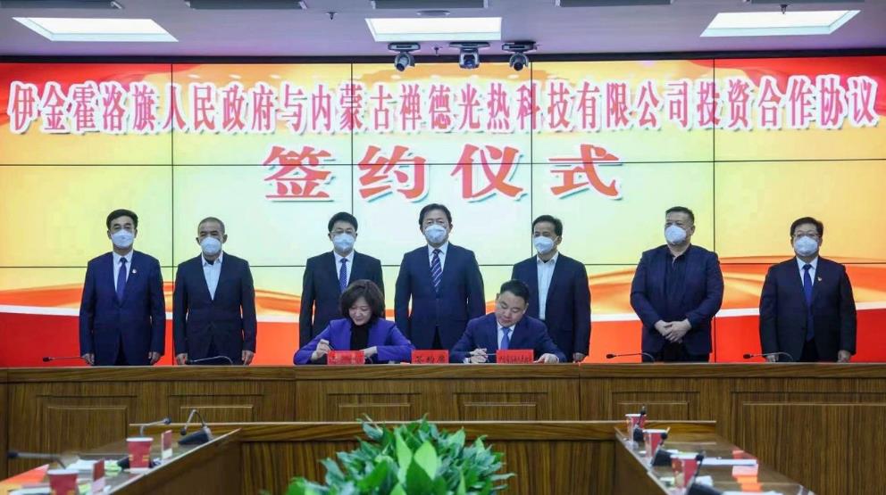 據伊金霍洛旗融媒體中心消息,1月6日,伊金霍洛旗人民政府與內蒙古禪德光熱科技有限公司舉行合作協議簽約儀式。市委常委、旗委書記華瑞鋒,內蒙古禪德光熱有限公司董事長薛黎明及旗領導白劍剛、杜彥斌出席簽約儀式,旗委副書記、政府旗長吳云主持簽約儀式。
