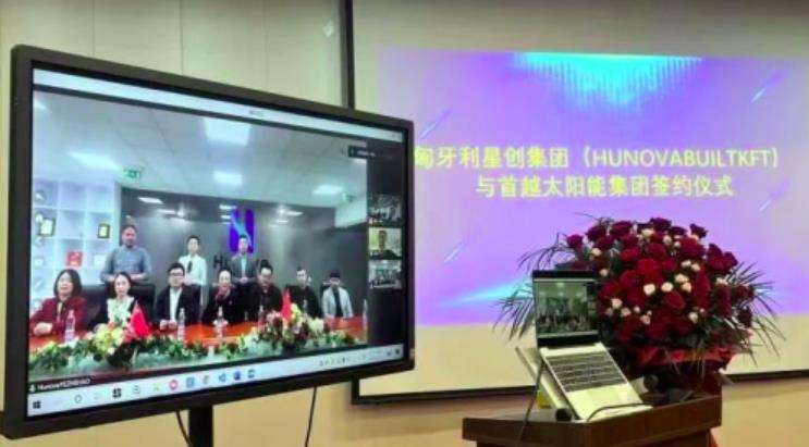 11月10日,首越太陽能集團與匈牙利星創集團(HUNOVABUILTKFT)在杭州舉行戰略合作簽約儀式。原杭州市貿促會二級巡視員、國際商會副會長何賢榮、溫州社區服務協會秘書長吳守興、溫州社區服務協會副會長溫州洲億國際大酒店管理有限公司董事長