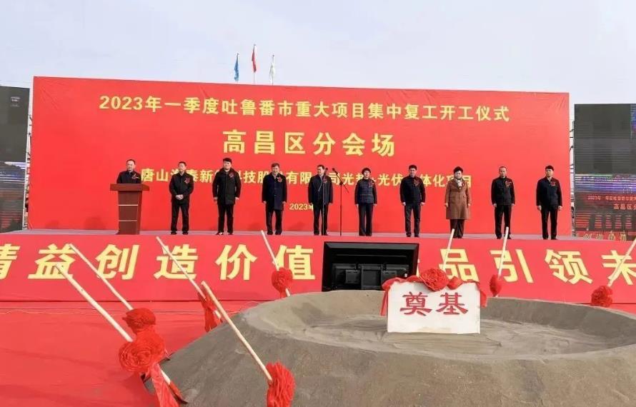 新疆吐魯番市2023年第一季度重大項目集中開復工儀式,于2月10日上午在吐魯番市高昌區分會場(七泉湖光伏園區海泰新能光伏+光熱一體化項目)順利舉行,由高昌區委、區政府主辦,唐山海泰新能科技股份有限公司、中國能源建設集團西北電力建設工程公司承