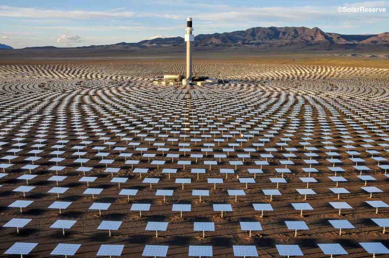 中控德令哈50兆瓦塔式光熱發電項目位于青海省海西州德令哈市的戈壁灘上,占地3.3平方公里。該項目也是國家首批光熱發電示范項目之一,裝機容量50兆瓦,配置7小時熔鹽儲能系統,鏡場采光面積54.27萬平方米,設計年發電量1.46億千瓦時。該電站