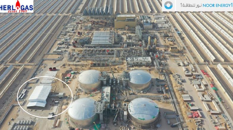 據西班牙Herlogas公司消息,近日,其成功完成了迪拜950MW太陽能光熱光伏混合項目(NoorEnergy1)中的200MW槽式光熱電站PT1的化鹽工作。圖片在NoorEnergy1項目中,HERLOGAS與總包方上海電氣合作,進行56