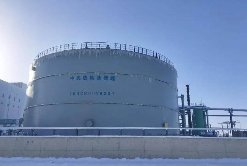 玉門鑫能50MW光熱發電項目冷熱熔鹽儲罐順利投用