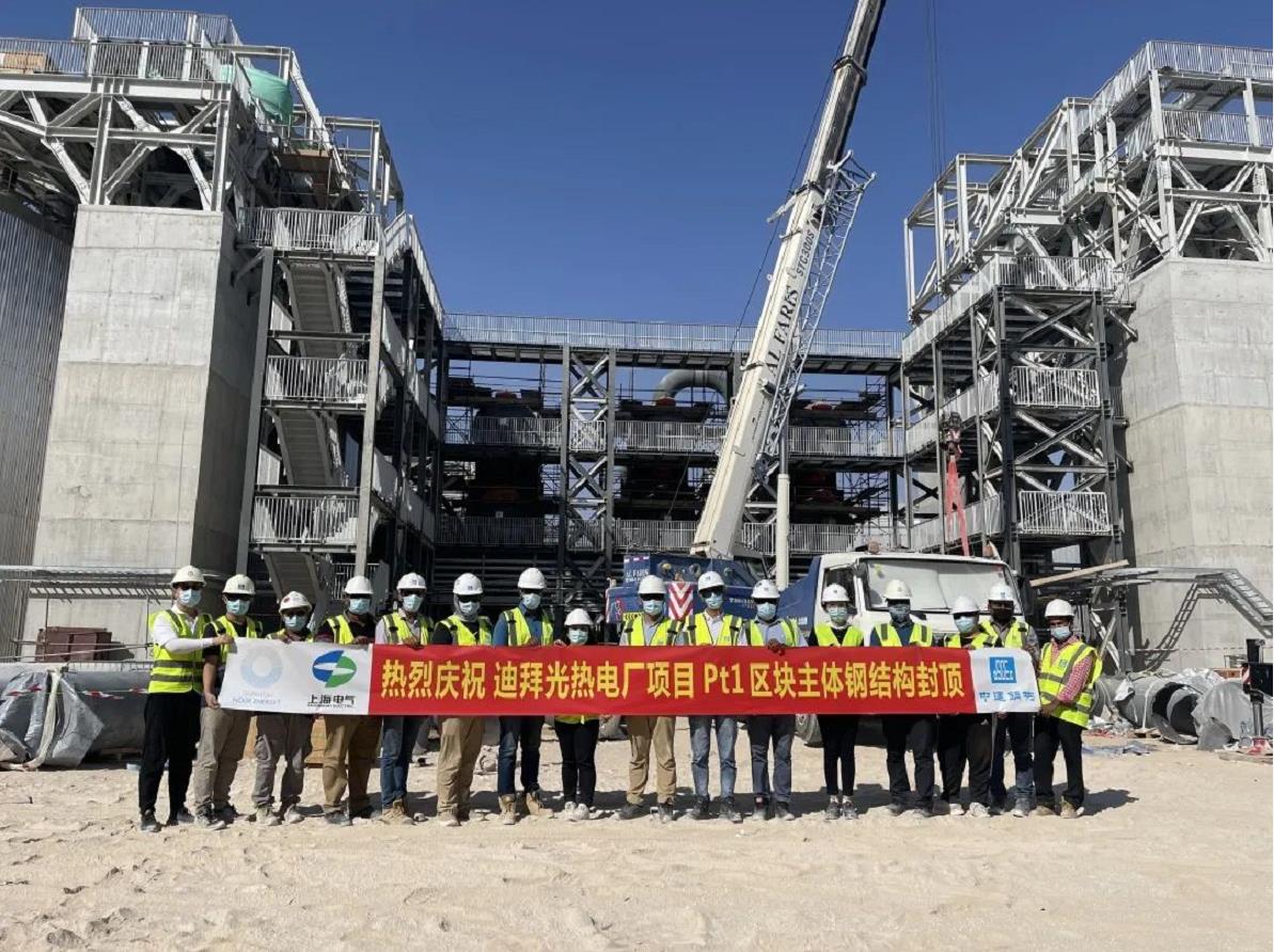迪拜700MW光熱和250MW光伏太陽能電站項目PT1區塊主體鋼結構封頂